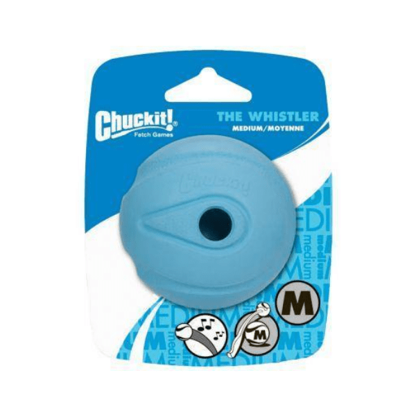 er. Ready, Set, Fetch with the Chuckit!® Whistler® Dog Fetch Toy. Designed to keep your dog interested and engaged in fetch, these high-bouncing rubber balls have four holes that produces a whistling sound as they soar through the air, giving your dog something to chase after. Made from durable easy to clean rubber, The Whistler is gentle on your dog's mouth as they retrieve the ball and are available in a variety of sizes for all dog breeds.