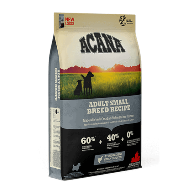 When it comes to ACANA® food for dogs, every ingredient matters. That’s why our Adult Small Breed Recipe is thoughtfully crafted to nurture your small dog from start to finish. Rich with 60% quality animal ingredients like fresh Canadian chicken and raw flounder balanced with 40% fruit, vegetables & botanicals, this recipe provides the protein and nutrition your small breed dog needs. With quality animal ingredients balanced with fruit, vegetables and botanicals delivered daily, every meal of ACANA Adult Small Breed Recipe is like it came from the farmer’s market.