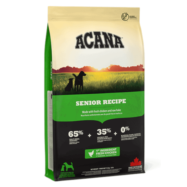 Senior Recipe is thoughtfully crafted to nurture senior dogs of all breeds with balanced nutrition and fewer calories. Made with 65%2 quality animal ingredients like fresh free-run1 chicken and raw hake balanced with 35% fruit and vegetables3 like fresh whole pumpkin, greens, apples and pears, this recipe provides the nutrition and animal protein your senior dog needs to live their best life. When it comes to ACANA™ food for dogs, we’re obsessed with every ingredient that goes into our premium recipes made right here in Canada. These wholesome ingredients are provided by suppliers we know and trust, and our vets and pet nutrition experts carefully craft each recipe with the goal of making your pet feel so good inside, you’ll see it on the outside.