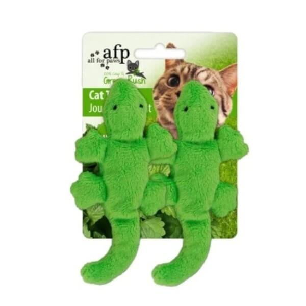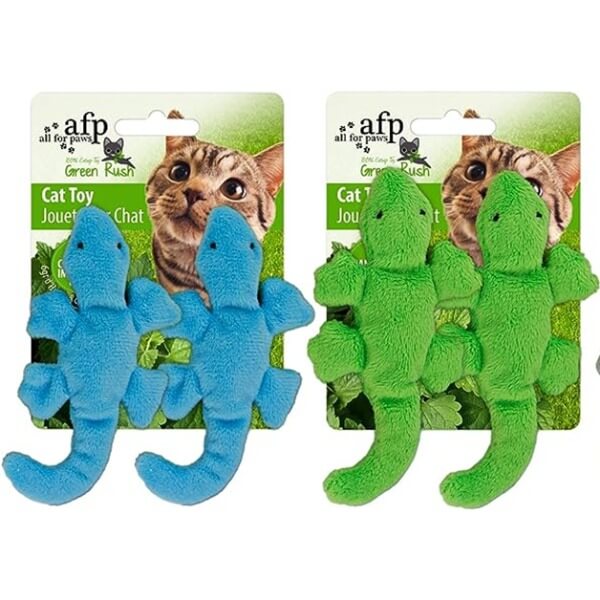 All For Paws Rush Gecko Catnip Toy is here to revitalise your fur friend’s mental and physical condition giving them the chance to strengthen their foraging skills indoors, without a mess or fuzz. Indoor cats can easily become dejected and desponded over time, by giving them catnip-filled toys will evoke their sense of exploration and curiosity. The All For Paws Rush Gecko Cat Toy combo is filled with 100% Canadian Catnip, a stimulant that targets the happy receptors in the brain giving them a sense of euphoria for up to 30 minutes after play.