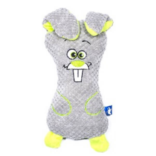 This plush bunny toy is made from 100% polyester with an EVA squeaker inside. The fabric is double layered for more durability. It is a great toy to play a game of light tug or fetch. tug or fetch.