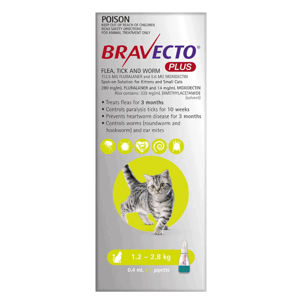 Cats are vulnerable to parasites too, especially in a multi-pet household. Fleas, ticks, heartworm disease, roundworms and hookworms can cause serious health problems in cats or kittens.Sizes: Small (1,2-2,8kg), Medium (2,8-6,25kg), Large (6,25-12,5kg)