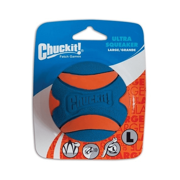 Chuckit! Ultra Squeaker Ball is the first-ever squeaker ball from Chuckit! The fun sounds and high bounce will entice your dog to play for hours on end.