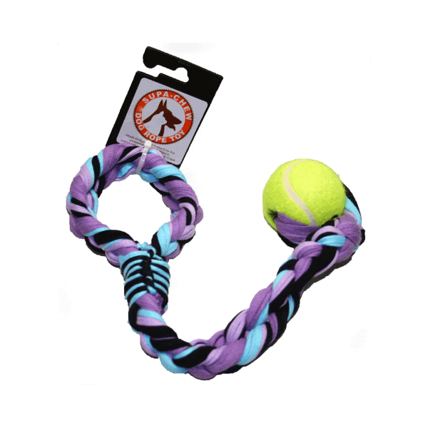 Stretchy sling with a tennis ball adds additional interest for our ball crazy pups.