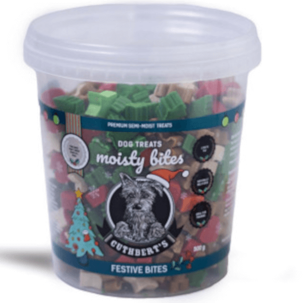 Cuthbert's Moisty Bites Festive Bites are delicious, tail-wagging soft & tender treats. Suitable for dogs of all sizes, and perfect for pups from six months old. Celebrate the festive season with your furry friend!
