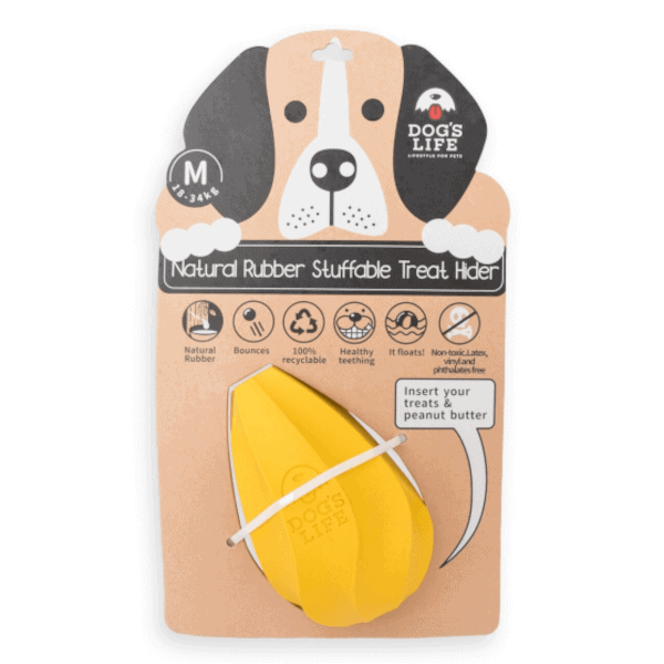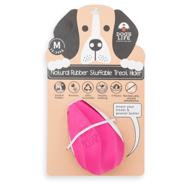 The Dog’s Life Stuffable Treat Hiders are made with natural rubber from the sap of rubber trees, so it's non-toxic and 100% biodegradable.