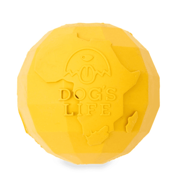 The Dog’s Life Africa Balls are made with natural rubber from the sap of rubber trees, so it's non-toxic and 100% biodegradable. They’re free of any harmful chemicals like BPA, phthalates, latex and vinyl and are super fun to play with even for kids! They’re durable and fun for moderate chewers and persistent chewers who like the springy resistance of this more flexible chew toy. Durable, natural rubber retains shape and stands up to tough chewing.