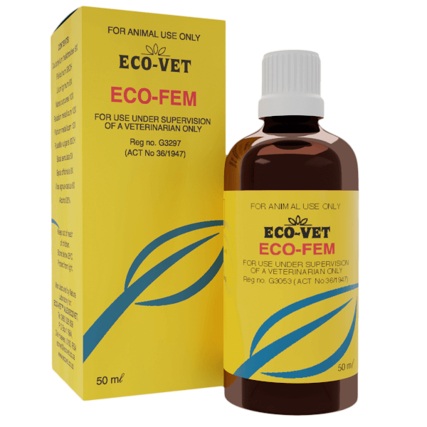 ECO-FEM is an oral homeopathic medicine for use as an adjuvant to assist in regulation of the female hormonal system in animals.