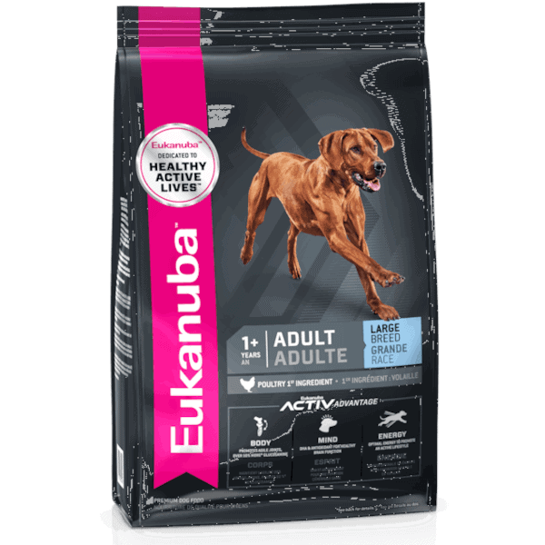 Complete and balanced feed for large breed adult dogs.Eukanuba™ ADULT LARGE BREED Dog Food is formulated to meet the nutritional levels established by the AAFCO Dog Food Nutrient Profiles for maintenance.