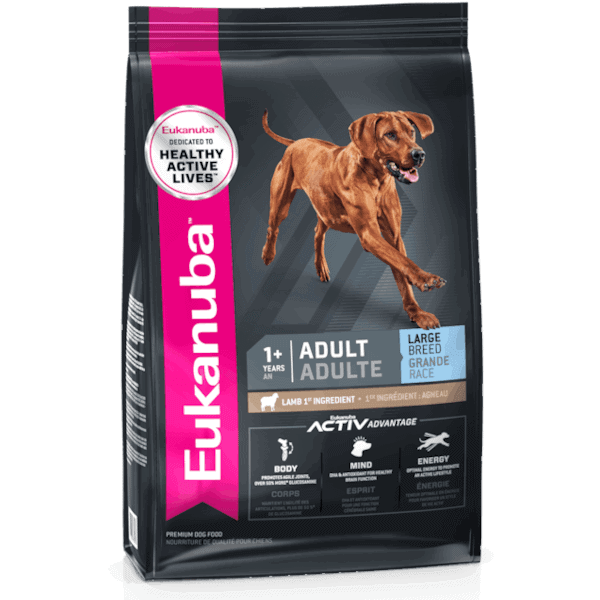 Complete and balanced feed for large breed adult dogs.Eukanuba™ ADULT LARGE BREED - LAMB 1ST INGREDIENT Dog Food is formulated to meet the nutritional levels established by the AAFCO Dog Food Nutrient Profiles for maintenance.