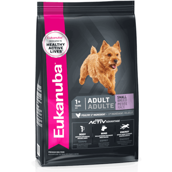 Complete and balanced feed for small breed adult dogs.Eukanuba™ ADULT SMALL BREED Dog Food is formulated to meet the nutritional levels established by the AAFCO Dog Food Nutrient Profiles for maintenance.