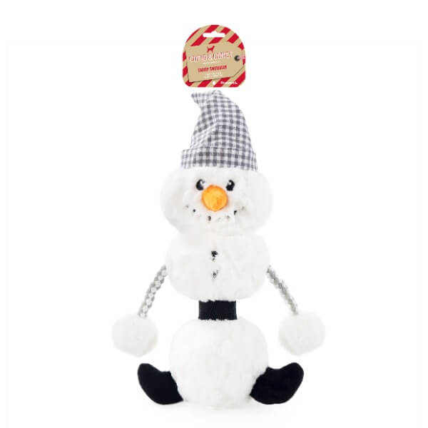 Festive Snoop Snowman is a multi textured, durable soft plush toy with roped arms and added squeaker for more fun and engagement!
