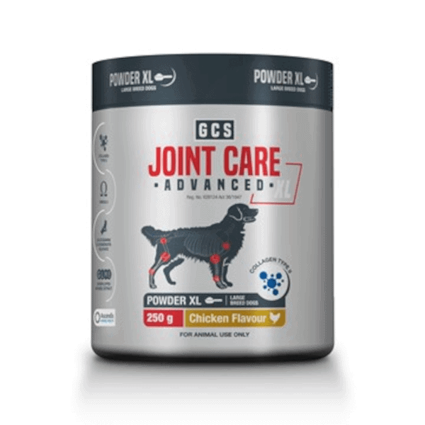 Highly palatable chicken flavoured powder supplement that supports joint health in large dogs. Formulated with 6 active ingredients to help manage pain & inflammation as well as repair and regenerate damaged joints.