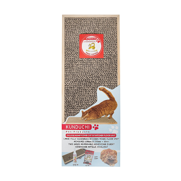 The Kunduchi Deluxe honeycomb Wooden floor and Wall cat Scratchers are strong and durable, and crafted out of wood to fit comfortably in any home. They’re so easy and convenient to use with complete instructions and accessories.
