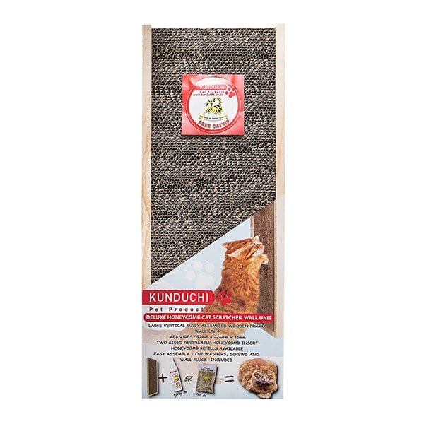 The Kunduchi Deluxe honeycomb Wooden floor and Wall cat Scratchers are strong and durable, and crafted out of wood to fit comfortably in any home. They’re so easy and convenient to use with complete instructions and accessories.