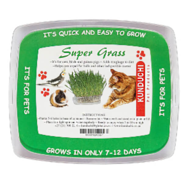 Super Grass is a highly nutritious living supplement for cats, birds, guinea pigs etc. to eat. It also adds roughage to their diet and helps cats to expel fur balls the natural way.Super Grass is as simple as adding water to grow and takes approximately one week.