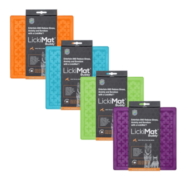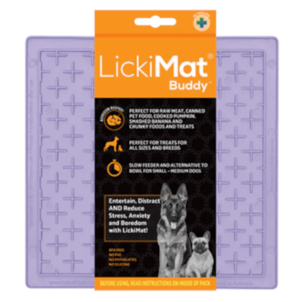 For fun pet interaction, three designs are available. Lickimat Buddy, with its cross maze design, is perfect for thick sticky treats like doggy peanut butter, wet food or soggy biscuits.