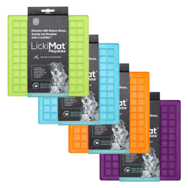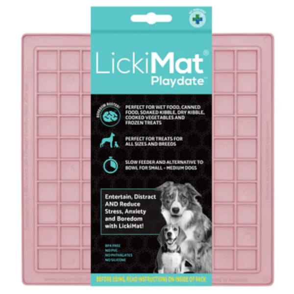 For fun pet interaction, three designs are available. Lickimat Playdate, with its box design, is perfect for mushy bits of meat or fish, yogurt, peanut butter and chunky treats and foods.