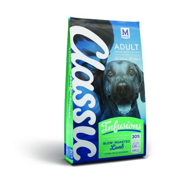 Classic Adult Infusions provides dogs with 365 kcal per 100 g, 20% Protein, 10% fat, and essential amino and fatty acids so they can live life to the fullest.