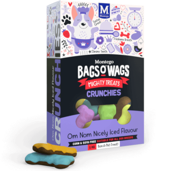 Highly nutritious, wagtastically delicious, BAGS O’ WAGS are the treats dogs love to get and they’re full of om-nom-nice-to-munch-and-crunch goodness!