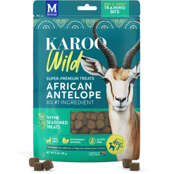 - African Antelope Meat, Peas, Vegetable Glycerine, Tapioca Starch, Whole Egg Powder, Dried Sweet Potato, Animal Plasma, Inulin, Cellulose, Animal Fats, Salt, Natural Smokey Flavour, Dried Rosemary, Citric Acid, Fish Oil, Dried Thyme, Potassium Sorbate.