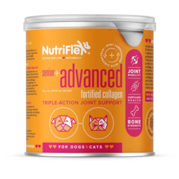Perfect for ageing pets and those requiring intensive joint care. NutriFlex Advanced delivers all the benefits of Everyday Maintenance Collagen PLUS enhanced triple-action joint support for pets requiring intensive joint care.