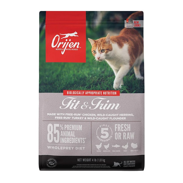 Help your pet thrive with the power of protein-rich recipes that nourish as nature intended. As obligate carnivores, all cats are meant to eat a Biologically Appropriate diet: one rich and varied in whole animal ingredients. ORIJEN® Fit & Trim recipe is optimized to support lean muscle mass and is specifically designed to support peak physical conditioning with quality animal ingredients from poultry and fish, organs, cartilage, and edible bone from fresh or raw free-run chicken and turkey*, and wild-caught fish. With rich inclusions of Wholeprey animals, ORIJEN cat food is made with the most nutrient-dense, succulent parts of the prey to deliver the nutrition cats need.