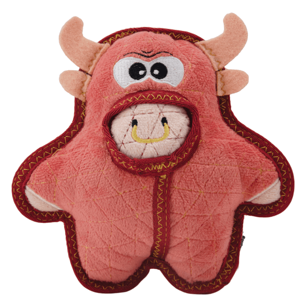Let your dog grab the bull by the horns with this SUPER tough and cuddly Xtreme Seamz Bull Pink Plush Dog Toy.