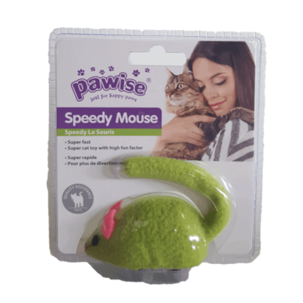 Get your cat up on their paws with this interactive Cat Toy! The Pawise Speedy Mouse runs on wheels and will soon grab their attention. Features soft fleece which cats love. Size: 9(l) x 6(h) x 4(w) cm