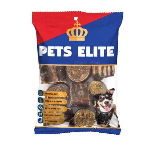 The Pets Elite Peanut Butter Lolly Dog Treats are a hollow dental tube filled with delicious liver infused peanut butter and cut into smaller treat sizes.