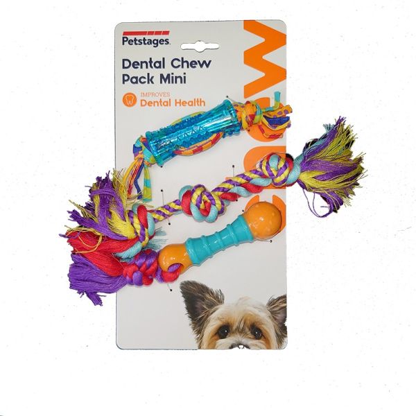 This triple treat of dental chews provides your small dog with a variety of fun, interesting toys that will improve their dental health! Includes one Mini Orka Pine Cone, one Mini Cool Chew, and one Mini Dental Rope.