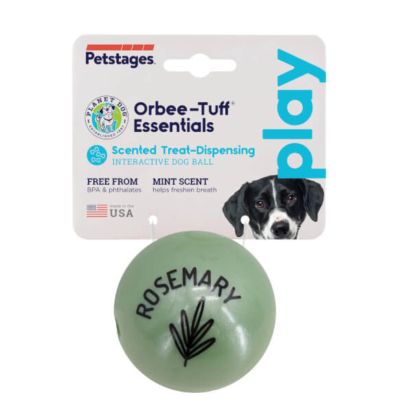 Introducing the Pet-stages Planet Dog Orbee-Tuff Essentials Scented Ball Treat Dispenser! Available in three scents each sold separately - lavender and rosemary.