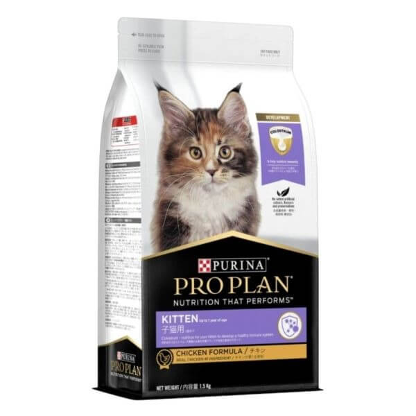PRO PLAN Kitten contains high levels of protein and fat to fuel a kitten's rapid growth. Balanced levels of calcium and phosphorus ensures healthy development of bones. A blend of all essential nutrients including DHA and EPA ensure healthy brain and vision development.