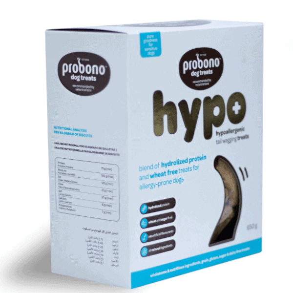 Treats are doggie rewards. They assist your dog in learning the pros and cons of good behaviour. Even when you use treats in combination with dog training, treats still need to be high-quality, healthy rewards. Probono Hypo-Allergenic Dog Treats are crafted to offer dairy-free, sugar-free, gluten-free, wheat and corn-free, all-around healthy doggie treats! This naturally preserved, hydrolysed protein is the ideal treat for sensitive dogs on special diets.