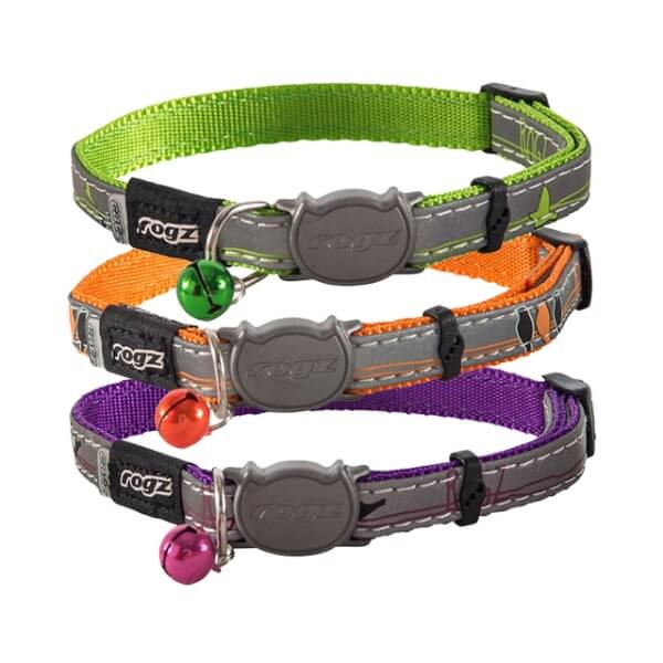 The Rogz Night Cat Safety Collar is made from snag-free 100% polyester webbing with a reflective printed design stitched on for night time visibility. Featuring a breakaway safety buckle. The Rogz Night Cat Safety Collar is made from snag-free 100% polyester webbing with a reflective printed design stitched on for night time visibility making it stylish and durable. It also features a breakaway safety buckle that is designed to break open if your cat’s collar gets snagged offering safety during their adventures.