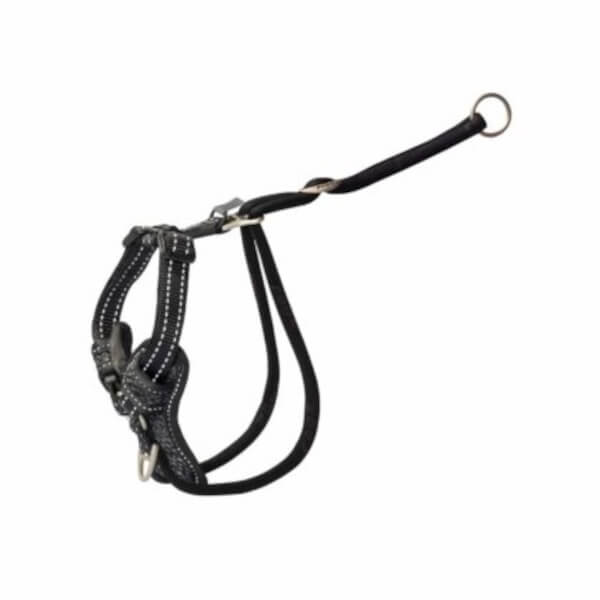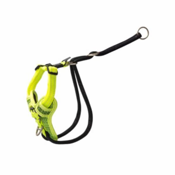 Perfect for strong pullers, Rogz Utility Stop-Pull Harnesses provide additional control and helps with training. Gentle pressure applied via the soft, puff rope under your dog’s front legs during Stop-Pull action aids in behaviour correction and halting your dog. A padded chest plate offers additional comfort and support while double reflective stitching provides night-time visibility. There is a Classic Lead attachment for everyday use via the puff rope O-ring and a Multi Lead attachment on the front chest pad for Stop-pull control and Two-point steering. A stow-away elastic loop on top of your dog’s back holds the O-ring and puff rope in place while your dog is off lead. Ensure the puff rope is pulled tight through the B-ring to prevent it coming loose. Fully adjustable with highly reflective stitching for night-time visibility as well as box-stitched joins and high-quality webbing add strength, durability and safety.