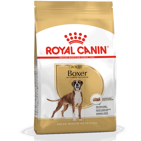 Please Note: This item is on backorder only and may take 5-7 working days to be dispatched Boxer dogs are self-assured, playful, and intelligent. They are also among the most athletic members of the canine species. Because each breed has specific needs, it’s important that your dog’s diet helps to maintain its unique lifestyle and optimal health. Suitable for Boxers aged 15 months old and over, ROYAL CANIN® Boxer Adult is specially formulated with all the nutritional needs of your adult dog in mind. The Boxer’s dynamism is well-renowned – this breed never holds back in terms of exerting energy once engaged in physical activity. Therefore, great demands can be placed on its body, meaning the Boxer needs a diet adapted to its intense levels of physical activity. That’s why ROYAL CANIN® Boxer Adult contributes to maintaining muscle mass, thanks to an adapted protein content and the inclusion of L-Carnitine. ROYAL CANIN® Boxer Adult also contains specific nutrients, such as taurine, EPA & DHA, to help support healthy cardiac function. Additionally, this formula contains an exclusive complex of antioxidants to help neutralise free radicals and support your dog’s natural defences. The kibble found in ROYAL CANIN® Boxer Adult is exclusively designed not only to make it easier for your dog to grasp the kibble, but to also encourage sufficient chewing before swallowing.