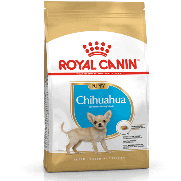 Please Note: This item is on backorder only and may take 5-7 working days to be dispatched Suitable for Chihuahuas up to 8 months old, ROYAL CANIN® Chihuahua Puppy is specially formulated with all the nutritional needs of your young dog in mind. The exclusive, tailor-made kibble in ROYAL CANIN® Chihuahua Puppy is specially adapted to the Chihuahua puppy’s very small jaws – making it easy for your puppy to pick up and chew. The exclusive formulation and selected flavours contribute to the high palatability level of this food – meaning it satisfies the appetite of even the fussiest of Chihuahuas! What’s more, ROYAL CANIN® Chihuahua Puppy’s formula contains a variety of beneficial nutrients that help to support and maintain your puppy’s digestive health. These carefully balanced nutrients not only help to reduce the volume of your dog’s faecal matter, but also the smell of it!