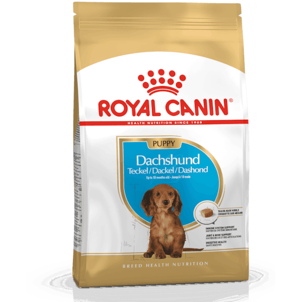 Please Note: This item is on backorder only and may take 5-7 working days to be dispatched Suitable for puppies up to 10 months old, ROYAL CANIN® Dachshund Puppy is specially formulated with all the nutritional needs of your puppy in mind. During this important growth period, your puppy’s immune system develops gradually. ROYAL CANIN® Dachshund Puppy contains a patented complex of antioxidants – such as vitamin E – that help to support your puppy’s natural defences. Thanks to an adapted calcium and phosphorus content, ROYAL CANIN® Dachshund Puppy contributes to supporting your puppy’s bones and maintaining joint health. ROYAL CANIN® Dachshund Puppy’s formula contains high quality protein. This protein has been specifically selected due to its high digestibility. In addition, the protein and prebiotics combined help to support your puppy’s digestive health. The exclusive kibble in ROYAL CANIN® Dachshund Puppy helps to support your puppy’s dental health by helping to reduce the formation of tartar, thanks to the inclusion of calcium chelators.