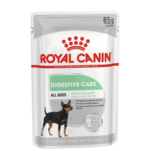 Digestive discomfort is no fun for anyone, including your canine companion. A diet containing high-quality nutrients not only contributes to your dog’s intestinal comfort, but also to its overall wellbeing. ROYAL CANIN® Digestive Care Loaf is suitable for dogs of all sizes. Tested at the Royal Canin kennels, ROYAL CANIN® Digestive Care Loaf contains highly digestible proteins, as well as a blend of prebiotics and fibers for balanced intestinal flora – ultimately helping to promote optimal stool quality. Royal Canin takes proteins very seriously, that’s why we only use the highest quality proteins, adapted to your dog’s exact needs. ROYAL CANIN® Digestive Care Loaf contains digestible proteins known as L.I.Ps, as well as a range of prebiotics for healthy gut flora. What’s more, a precise balance of soluble and insoluble fibers are included in ROYAL CANIN® Digestive Care Loaf to help limit fermentation and support healthy intestinal transit. In addition to this delicious pâté, our Digestive Care nutritional program is also available as crunchy kibble. Both are nutritionally complete and perfectly complement each other. Why not try the pâté as a delicious topping to the kibble? Switch your dog to ROYAL CANIN® Digestive Care and witness the benefits of high-quality nutrients calibrated for optimal intestinal comfort and better absorption.