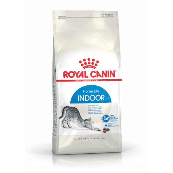 Indoor adult cats like yours tend to get less exercise than outdoor cats, that's why a balanced and complete diet containing beneficial nutrients is important for optimal health. ROYAL CANIN® Indoor 27 contains a highly digestible protein (L.I.P.) that's specifically selected for its very high digestibility. This protein also helps to reduce the quantity of your cat's stool, as well as reducing the smelly stool odour that occurs when cats have a lower intestinal transit due to a lack of exercise.This food has a moderate fat content in order to ensure that your cat's calorie intake is aligned with its level of activity - the calorie content also contributes to the maintenance of a healthy weight.It's common for indoor cats to spend long periods of time grooming themselves. Thanks to the inclusion of specific dietary fibres, such as psyllium, this food also helps to stimulate the clearance of ingested hair - resulting in a significantly reduced amount of hairballs.Variations of ROYAL CANIN® Indoor dry food are also available depending on your cat's lifestyle, appearance, and age: Indoor Appetite Control, Indoor Long Hair, and Indoor 7+.