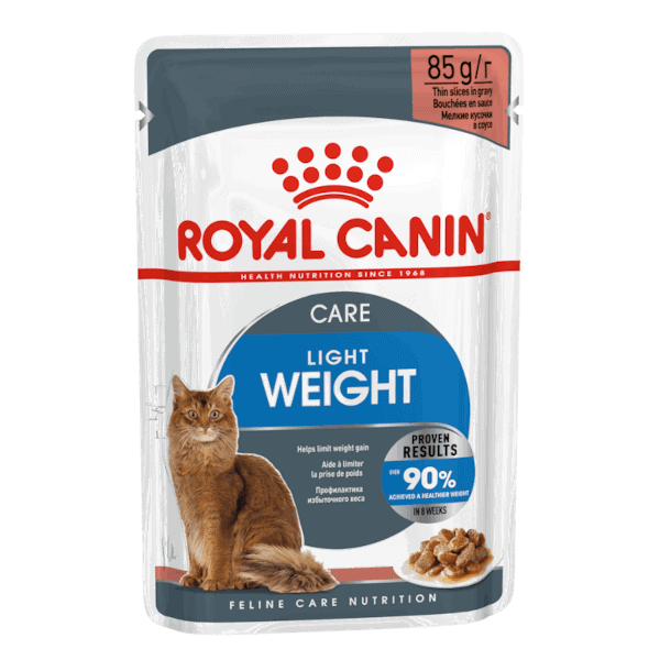 ROYAL CANIN® Light Weight Care in Gravy is a nutritionally balanced formula that is tailor-made to support adult cats with a tendency to gain weight by satisfying their hunger and helping to keep them lighter on their paws. ROYAL CANIN® Light Weight Care in Gravy is formulated with a precise balance of vitamins and minerals to help maintain your cat’s lifelong wellbeing. This formula is enriched with L-Carnitine, a nutrient involved in healthy fat metabolism, while the adapted protein content supports your cat’s muscle mass for a healthier body weight. In an internal Royal Canin study, ROYAL CANIN® Light Weight Care in Gravy proved effective for more than 90% of participating cats. To appeal to each cat’s appetite, ROYAL CANIN® Light Weight Care also comes in two other wet food textures: Jelly and Loaf. Light Weight Care is also available as dry food with crunchy kibble. If your cat enjoys a combination of wet and dry food, be sure to follow the on-pack feeding guide to ensure accurate portions.