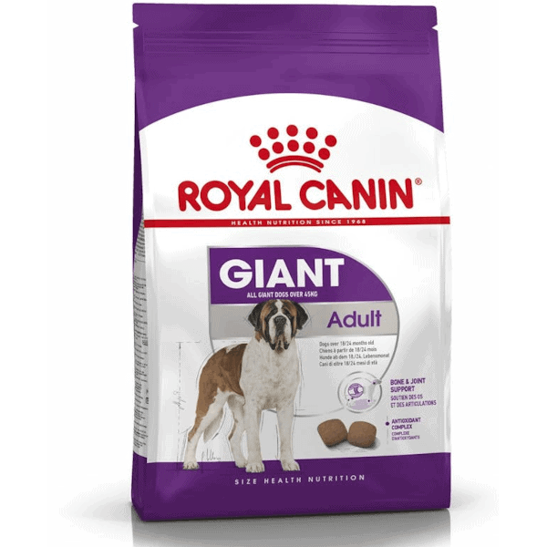Giant breeds of dogs can weigh anything up to 100kg, so it's important that their diet gives them the nutrition they need to support their size and joints, as well as their general health. That's why ROYAL CANIN® Giant Adult is suitable for adult dogs that weight 45kg and over and is specially formulated with the nutritional needs of giant dogs like yours in mind. Giant breeds of dogs can weigh anything up to 100kg, so it's important that their diet gives them the nutrition they need to support their size and joints, as well as their general health. Correctly managing your dog's weight is of vital importance in order to avoid unwanted excess weight gain. As a giant dog breed, your dog is already carrying a significant amount of weight around - therefore in addition to having a highly nutritious diet, your dog needs regular and sufficient exercise to further support the maintenance of a healthy weight. ROYAL CANIN® Giant Adult food is formulated with an exclusive and balanced complex of antioxidants (such as vitamins A, E, and C) which help to neutralise the effects that free radicals that can have on your dog's cells. Amino acids such as taurine and L-Carnitine are also included in ROYAL CANIN® Giant Adult food, they help to support your dog's circulatory function and cardiac health. At ROYAL CANIN® we're committed to providing nutritional solutions to your pet's needs. All of our products undergo an extensive quality control process in order to guarantee the optimum quality of food as well as catering to your dog's specific dietary requirements and lifestyle. This means that when your dog eats ROYAL CANIN® Giant Adult, it's getting a complete and balanced diet.