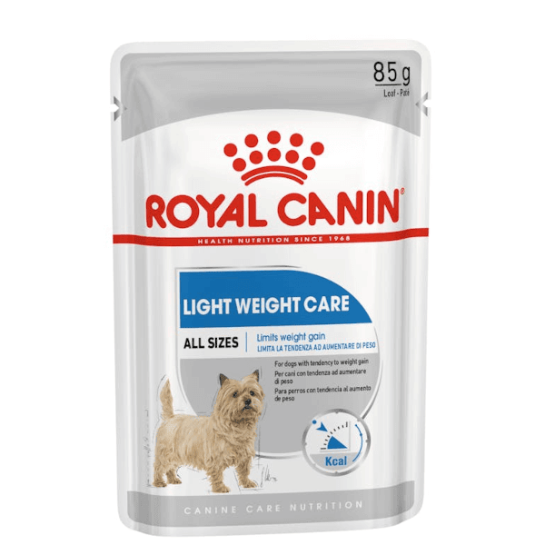Thanks to its reduced fat content, ROYAL CANIN® Light Weight Care Loaf helps your dog to achieve and maintain their optimal weight. ROYAL CANIN® Light Weight Care Loaf has a specially adapted protein, calorie, and fat content to help support healthy muscle mass and body weight. The carefully selected combination of soluble and insoluble fibres helps to stimulate the feeling of fullness and satisfaction after eating. ROYAL CANIN® Light Weight Care is also available as dry kibble in a range of different sizes to suit all breed types. If your dog enjoys a mixed diet of wet and dry food, be sure to reference the on-pack feeding guides to provide the right portions for optimal wellbeing.
