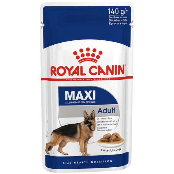Suitable for all large dogs between 15 months-8 years old that weigh between 26-44 kg, ROYAL CANIN® Maxi Adult in Gravy is specially formulated with all the nutritional needs of your adult dog in mind. ROYAL CANIN® Maxi Adult in Gravy's exclusive formula contains a balanced supply of dietary fibre and high quality protein, selected for its very high digestibility.
