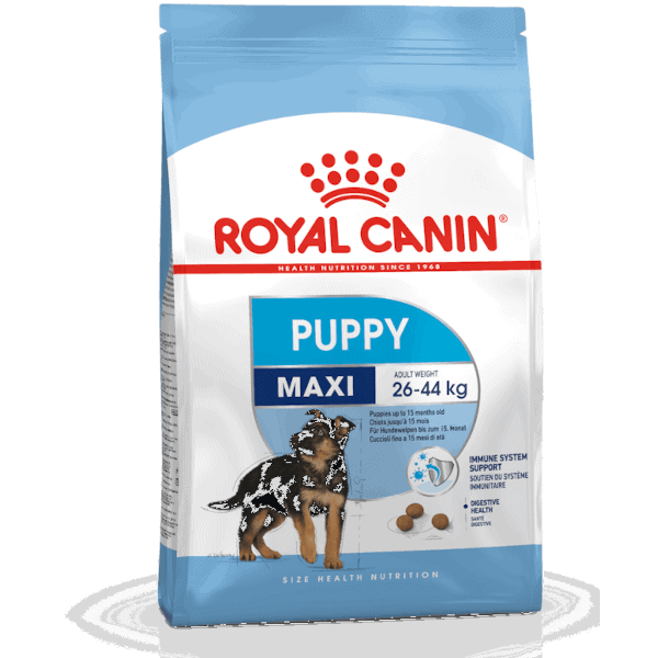 ROYAL CANIN® Maxi Puppy is specially formulated with the nutritional needs of your large puppy in mind. This food is suitable for large puppies from 2 to 15 months old that will have an adult weight of approximately 26kg-44kg.