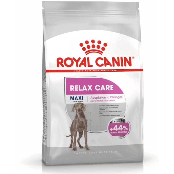 When your dog loses his routine, he can feel uneasy. A stressed dog might behave unexpectedly, isolate, hide, or be restless – all signs of upset nerves. High-quality nutrition that’s specially calibrated to help your dog adapt gives him a chance to start feeling better. This extra-tasty recipe contains a naturally-sourced adaptogenic nutrient that helps to moderate your dog’s responses to upsets. We include this high-quality nutrient in a digestible form and, what’s more, we monitor its exact composition, quantity, and quality every month. Suitable for dogs that weigh between 26kg and 44kg, ROYAL CANIN® Relax Care Maxi helps to calm your dog’s reaction to change. All Royal Canin foods are nutritionally complete and contain 100% of the nutrients your dog needs as a healthy base for wellbeing. These nutrients include fats, fibers, proteins, vitamins, and minerals. Our Relax Care nutritional program has two components available: crunchy kibble and a delicious pâté in a pouch, both are nutritionally complete and perfectly complement each other. Why not try the pâté as a delicious topping to the kibble? Don’t just take our word for it, when scientifically tested at the Royal Canin kennels, +44% of dogs behaved normally in changing situations. This means that ROYAL CANIN® Relax Care Maxi’s results are a proven success.