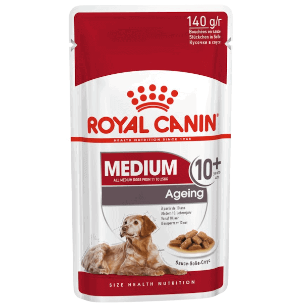 Suitable for medium sized dogs over 10 years old that weigh between 11-25 kg, ROYAL CANIN® Medium Ageing 10+ in Gravy is specially formulated with all the nutritional needs of dogs like yours in mind. ROYAL CANIN® Medium Ageing 10+ in Gravy contains an exclusive complex of antioxidants