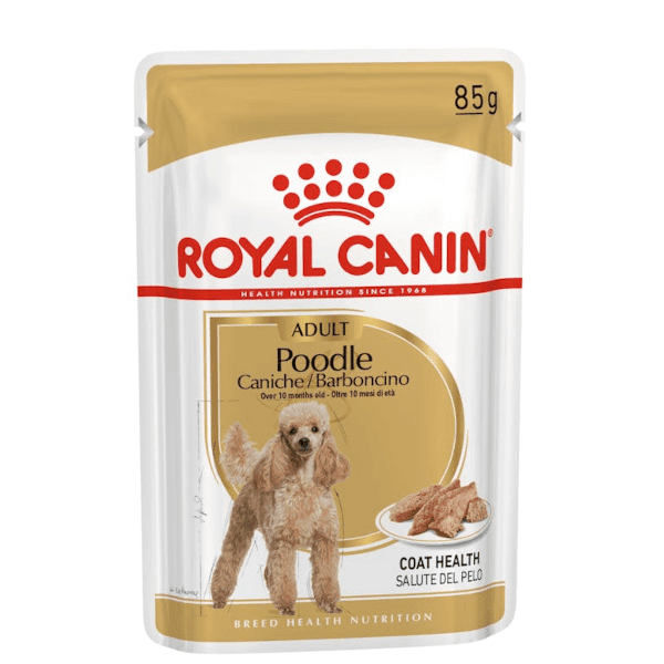 Please Note: This item is on backorder only and may take 5-7 working days to be dispatched Intelligent, alert and active companions that are harmoniously built, the poodle is a long-eared and curly-coated breed of dog that exudes elegance and pride. Suitable for Poodles over 10 months old, ROYAL CANIN® Poodle in Loaf is specially formulated with all the nutritional needs of your adult dog in mind. ROYAL CANIN® Poodle in Loaf is designed to help maintain your poodle’s muscle tone and enhance its physical health. Thanks to the inclusion of optimal nutrients, ROYAL CANIN® Poodle in Loaf supports the Poodle’s skin health to help maintain its beautiful woolly coat. ROYAL CANIN® Poodle in Loaf is formulated with a specifically adapted texture to provide increased palatability in order to help satisfy the appetite of even the fussiest Poodles! To cater to each dog’s individual preferences, ROYAL CANIN® Poodle in Loaf is also available as dry food, with crunchy and tasty kibble. If you’re considering mixed feeding, simply follow our feeding guidelines to ensure your dog gets an accurate amount of both wet and dry food for optimal benefit.
