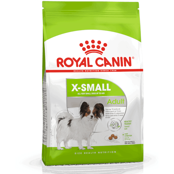 Please Note: This item is on backorder only and may take 5-7 working days to be dispatched Suitable for very small dogs over 10 months old that weigh up to 4kg, ROYAL CANIN® X-Small Adult is specially formulated with all the nutritional needs of your X-Small adult dog in mind. ROYAL CANIN® X-Small Adult contains very high quality protein (L.I.P.), specifically chosen for its easy digestibility. This protein, combined with a balanced intake of fibres like psyllium, helps to facilitate healthy intestinal transit.
